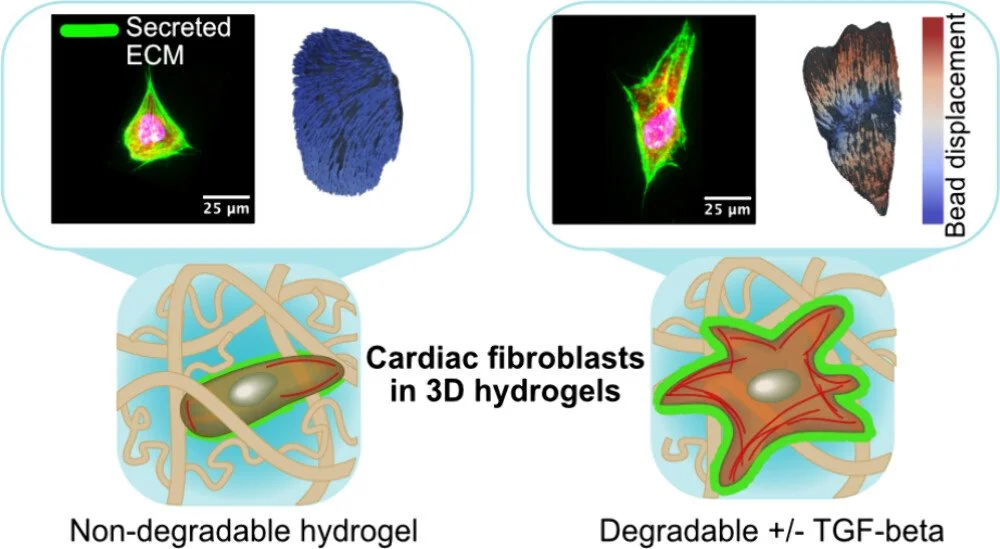 Extra, extra(cellular matrix), read all about it! Check out the latest manuscript out of our lab in ACS Biomaterials Science and Engineering entitled, “Effects of Stiffness and Degradability on Cardiac Fibroblast Contractility and Extracellular Matrix Secretion in Three-Dimensional Hydrogel Scaffolds.” In it, we demonstrate the importance of matrix degradability for cardiac fibroblast activation and protein secretion. We also highlight improved methods for studying myofibroblast activation in 3D-encapsulation systems, helping us better understand diseases like cardiac fibrosis.